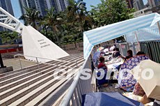 圖:球迷烈日下等候購買皇馬表演賽入場券