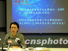 香港中文大學(xué)五日公布的調(diào)查結(jié)果顯示,與92年時相比,香港大專學(xué)生對性騷擾問題的意識仍然不高。圖為負(fù)責(zé)這項(xiàng)研究工作的香港中文大學(xué)心理學(xué)系教授鄧素琴。作者:裘之越