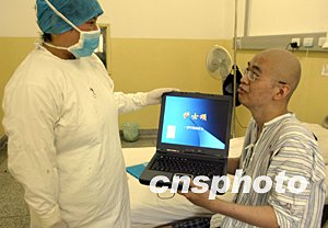 在北京地壇醫(yī)院住院治療的全國最后一批SARS患者下周即將全部康復(fù)出院。4月7日發(fā)病,17日住院的北京“北方交通大學(xué)”計(jì)算機(jī)專業(yè)19歲學(xué)生孫崢,歷經(jīng)四家醫(yī)院一百多天的搶救治療終于從死亡的邊緣回到了人間。就要離開地壇醫(yī)院的孫崢制作了幻燈片“護(hù)士頌”,表達(dá)對(duì)白衣天使的衷心感謝。中新社記者:任晨鳴
