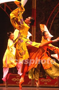 "二姨太學(xué)戲舞"展現(xiàn)了中國(guó)古典戲裝與西方芭蕾足尖藝術(shù)的巧妙融合。