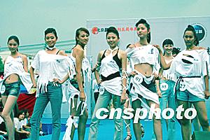 八月九日,新絲路北京模特大賽在北京舉行,一百多名佳麗參加了比賽,在才藝表演中,參賽佳麗展示她們在五分鐘之內裁剪出來的時裝。中新社記者:盛佳鵬