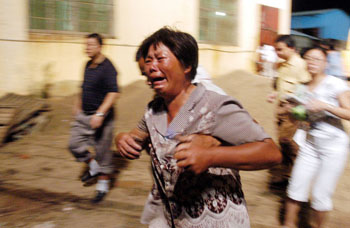 幾聲微弱的呼救聲傳來,施救人員循聲搜索,搬走層疊的磚塊、鋼筋。一個被困工人的頭部露出來了,他的腿被廠房橫梁壓住,渾身動彈不得。120的醫(yī)護人員告訴鄭立中,他們已經(jīng)為傷員打了針,還不時給他喂水。鄭立中感謝醫(yī)護人員為傷員所做的一切,同時親切慰問了傷員。望著書記奔忙在現(xiàn)場的身影,參加搶救的軍警民不覺加快了手中的活。起重機和推土車前來助陣。20多分鐘后,橫梁終于被搬走,受困工人立刻被送往醫(yī)院。