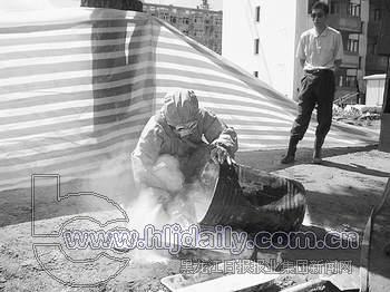 從北疆花園收購(gòu)走5個(gè)金屬桶的的南方人叫李會(huì)珍,來自河南,今年31歲,在齊齊哈爾以收購(gòu)廢品為生。李會(huì)珍在北疆花園工地附近收購(gòu)到這5個(gè)金屬桶后,用三輪車將這5個(gè)桶拉到他常去賣廢品的龍沙區(qū)鐵南廢品收購(gòu)站。因?yàn)檫@5個(gè)桶中有一個(gè)已經(jīng)破損,從這四個(gè)好桶子和一個(gè)破桶子可以看出,桶子的蓋子是銅的,桶子的外壁是鐵的,桶子的內(nèi)壁是鉛的。因?yàn)殂~、鐵、鉛的價(jià)錢是不一樣的,他在鐵南廢品收購(gòu)站旁邊,找到了朋友王成,并且借來了鐵鋸,打算把這幾個(gè)桶鋸開再賣。