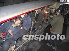 山西大同市杏兒溝煤礦第六批搜救隊(duì)員在瓦斯爆炸現(xiàn)場(chǎng)連續(xù)工作十小時(shí),搶救依然失蹤的5名礦工。圖為搜救隊(duì)員13日疲憊不堪地走出坑口。杏兒溝煤礦“八·一一”瓦斯爆炸已造成三十七人死亡。作者:王煥偉