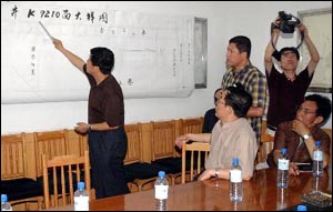 在后方指揮部的一間小會(huì)議室里,閃光燈在不停地閃爍,領(lǐng)導(dǎo)、煤礦負(fù)責(zé)人、記者,擠了滿滿的一屋人。晚上22點(diǎn)25分,山西省省委書記田成平從太原趕到陽泉,長形會(huì)議桌前,煤礦負(fù)責(zé)人正在掛在墻上的“裕公井K7210面大樣圖”前介紹煤礦和事故的基本情況。