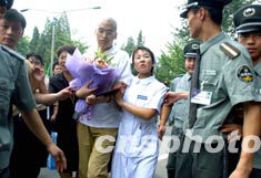 中新網(wǎng)北京8月16日電(記者吳慶才)今天,十九歲的北方交大學(xué)生孫崢緊緊地?fù)肀е暮亲o(hù)他的“干媽”——地壇醫(yī)院護(hù)士長(zhǎng)劉曉冬。孫崢和另一名SARS患者盧志艷今天成了中國(guó)最后兩名走出病房的SARS康復(fù)者。至此,中國(guó)抗擊SARS的斗爭(zhēng)取得了全面的勝利。