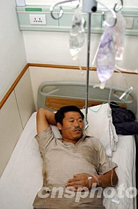 圖為來(lái)自吉林榆樹(shù)的受傷民工董彥山經(jīng)過(guò)搶救已經(jīng)完全脫離危險(xiǎn)。作者:寧秀英