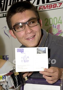 歌星陳冠希8月18日在香港出席新城電臺(tái)與香港郵政合辦《Edison聯(lián)fan集郵Teen》參觀郵政總局活動(dòng),對(duì)兩臺(tái)舊式郵筒頗具興趣。作者:鄧慶樂(lè)