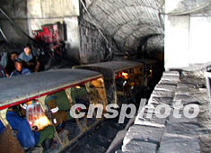 山西大同杏兒溝煤礦八·一一礦難的救援隊員,八月十四日下午攜帶防爆數(shù)碼攝像機、照像機,再次進入特大瓦斯爆炸現(xiàn)場,進行調查取證。作者:王煥偉