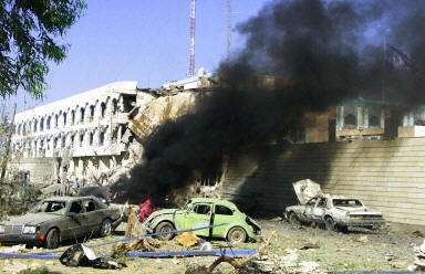 中新網(wǎng)8月19日電當(dāng)?shù)貢r(shí)間8月19日16:40左右(北京時(shí)間8月19日20:40左右),設(shè)在伊拉克首都巴格達(dá)運(yùn)河酒店的聯(lián)合國(guó)辦事機(jī)構(gòu)總部發(fā)生強(qiáng)烈爆炸,造成三人死亡,數(shù)十人受傷。有證據(jù)表明爆炸是汽車炸彈造成的。