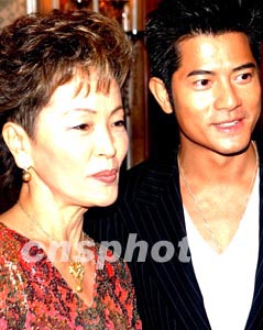 香港明星郭富城和日本世界著名小提琴家西崎崇子,在二十三日晚紅(石+勘)香港體育館舉行的2003年度香港小姐競選決賽上擔任評判。 中新社傳真 錢興強 攝