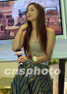 香港演藝明星徐子淇二十四日出席一新聞發(fā)布會時,身穿低胸緊身衣,性感十足。作者:譚達(dá)明