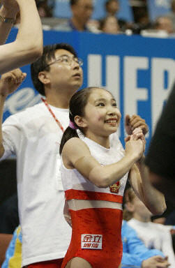 25日在第37屆體操世錦賽上,中國小將范曄以一套無可挑剔的動作得到了9.812分,無可爭議的摘走了金牌。這也是中國隊在本屆世錦賽中獲得的第四枚金牌。圖為范曄在等待裁判打分時的激動表情。