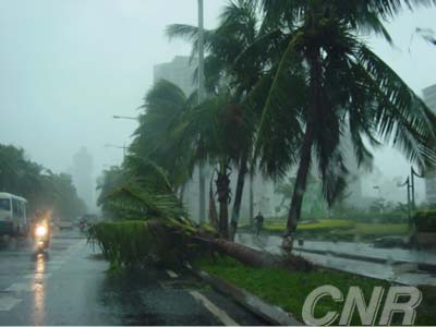 由于受到大范圍停電的影響,記者到八時三十分才能打開電腦寫稿,但是短短一篇稿件的撰寫中,卻經(jīng)歷了四次停電。記者一大早在中新社海南分社附近地區(qū)看到,今晨橫掃海口的“科羅旺”在城市的樓宇中穿行,強大的氣流形成了類似乎警笛一樣的怪叫聲,整個城市處于一種莫名的氣氛中。