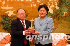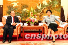 八月二十六日,全國(guó)政協(xié)副主席、中共中央統(tǒng)戰(zhàn)部部長(zhǎng)劉延?xùn)|(右)在北京會(huì)見(jiàn)了以廖長(zhǎng)城為團(tuán)長(zhǎng)的香港律師界訪(fǎng)京團(tuán)。中新社記者:盛佳鵬