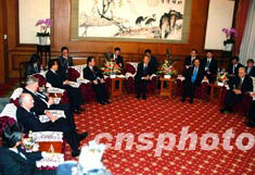 各方代表團(tuán)進(jìn)入六號(hào)樓后稍作休息,于七點(diǎn)二十五分左右前往會(huì)見廳。在那里,笑容可掬的中國外交部部長(zhǎng)李肇星以及中方代表團(tuán)團(tuán)長(zhǎng)、副外長(zhǎng)王毅,已經(jīng)站在門內(nèi)迎候他們的到來。