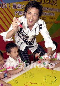 庾澄慶與保良局兒童繪畫心意咭。中新社記者:鄧慶樂(lè)