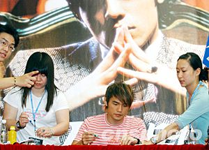 組圖:臺灣歌星周杰倫為歌迷簽名