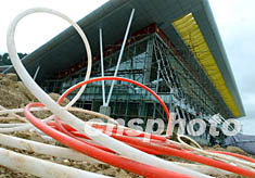 正在四川省松潘縣川主寺修建安裝的九寨黃龍旅游機場候機樓,為中國高原的現(xiàn)代化航空港,將于九月二十八日通航使用。它可停靠五架飛機,滿足年六十萬人次的旅客流量。中新社記者:賈國榮
