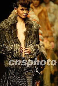 中國(guó)當(dāng)代六位最優(yōu)秀的時(shí)裝設(shè)計(jì)師,今秋十月十三日將在法國(guó)巴黎時(shí)裝周上展示新作,中國(guó)最優(yōu)秀的十名模特為她們表演極具東方魅力的中華時(shí)尚服飾。圖為中國(guó)設(shè)計(jì)師武學(xué)凱的皮草新作。中新社記者:賈國(guó)榮