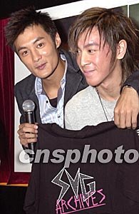 歌星麥浚龍9月3日在香港出席余文樂全新個(gè)人專輯《LOST AND FOUND》發(fā)布會(huì),麥浚龍發(fā)布會(huì)向余文樂送上T恤助慶。作者:鄧慶樂