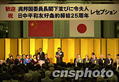 日本首相小泉純一郎、日本參眾兩院議長和日本各界人士1500多人出席了招待會。這一招待會是由中國駐日本大使館、日本外務(wù)省和日中友好協(xié)會、日本國際貿(mào)易促進協(xié)會、日中友好議員聯(lián)盟等七個日中友好團體聯(lián)合舉行的。(孫建和、藍小芹、張暉)