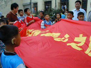 滄州聾啞學(xué)校的孩子們觸摸愛心——“愛心之旅”采訪團受到聾啞兒童的歡迎。華夏時報圖