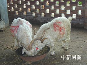 中國首批成年體細胞克隆山羊“陽陽”已經(jīng)三歲了。中新社記者 孫自法 攝