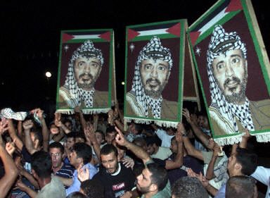 就在以色列做出上述決定的同時,阿拉法特依然受到數(shù)千支持者的擁戴,當(dāng)他在周三走出辦公總部時無數(shù)的支持者在向他歡呼。身旁有保鏢保護(hù)的阿拉法特向支持者拋去飛吻,并做出勝利的姿式。在加沙城市中心,5000多人走上街頭進(jìn)行游行表達(dá)對阿拉法特的支持。(春風(fēng))