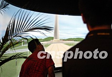 科博會之?dāng)?shù)字奧運技術(shù)裝備展首次向大眾展出,圖為觀眾在觀看奧運場館建設(shè)三維仿真系統(tǒng)。中新社記者:張宇
