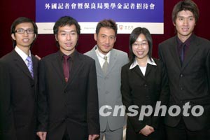 張學(xué)友與四名獲得獎(jiǎng)學(xué)金得主于會(huì)上合照。作者:鄧慶樂(lè)