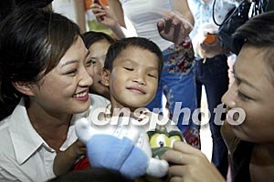 圖:世界小姐中國(guó)總決賽參賽選手看望殘疾兒童