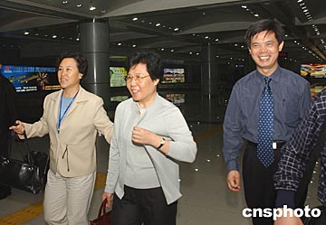 九月二十一日,出席第二屆世界華文傳媒論壇的國務(wù)院僑辦主任陳玉杰(中)抵達(dá)長沙,中國新聞社總編輯郭招金(右)等人前往機(jī)場迎接。中新社記者:武仲林
