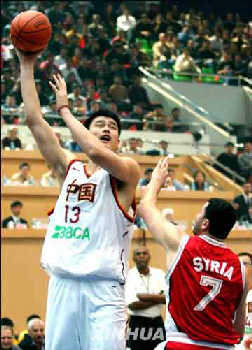 在全場(chǎng)觀眾的期待中,姚明首發(fā)出場(chǎng),與張勁松、李可、朱芳雨、劉煒攜手上陣。緊逼防守和快速的反擊屢屢奏效,小巨人幾次漂亮的扣籃和蓋帽更是贏得滿(mǎn)場(chǎng)喝彩。相比之下,敘利亞隊(duì)顯得畏手畏腳,過(guò)于保守,完全沒(méi)有了上屆亞錦賽歷史性地打入四強(qiáng)的斗志。僅第一節(jié)比賽,中國(guó)隊(duì)就以三十二比九遙遙領(lǐng)先,姚明獨(dú)得十二分。