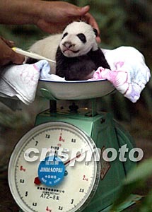北京動(dòng)物園大熊貓“妞妞”8月24日產(chǎn)下的幼崽在9月24日滿月之日第一次睜開(kāi)了雙眼,小家伙已經(jīng)初具大熊貓的外貌,體重從出生時(shí)的150克猛增到1160克。中新社記者:任晨鳴