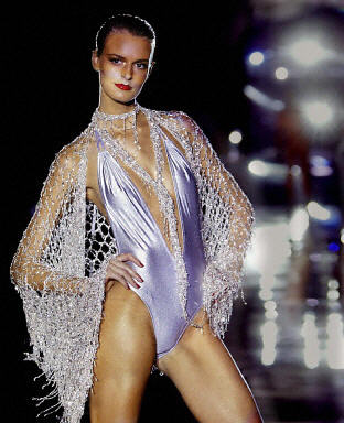 9月24日,在倫敦的2004春夏時(shí)裝周上,名?藏悹栒故綣ulien Macdonald設(shè)計(jì)的新款時(shí)尚時(shí)裝,展露自己的性感身材。