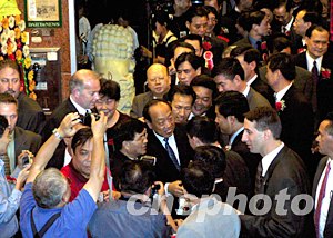 今晚恰逢紐約華人社團(tuán)聯(lián)合總會舉行慶祝中國國慶的晚會,李肇星向僑胞們報告了“非典”之后中國經(jīng)濟(jì)迅速恢復(fù)和增長的好消息。他希望華僑華人為促進(jìn)兩國人民的理解和友誼作出新的貢獻(xiàn)。