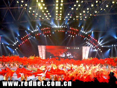 整臺晚會的核心是“中國年度電視禮贊”,通過情景劇、歌舞劇等各種演繹形式,《孝莊秘史》、《劉老根》、《DA師》、《中原突圍》等十部本年度中國最優(yōu)秀的電視作品被一一“微縮”到了舞臺之上。開局的解放軍戰(zhàn)士象古代輕功大師一樣在空中飛翔,以及重型坦克配合《DA師》情景劇緩緩駛上舞臺時,強(qiáng)烈的視覺沖擊博得了現(xiàn)場觀眾如雷的掌聲。