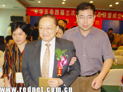 9月27日上午,推選產生的“五岳聯(lián)盟”首任執(zhí)行主席(盟主)劉麗華為首任“五岳聯(lián)盟”榮譽盟主金庸先生頒發(fā)了聘書,金庸先生將早已備好的一柄上書“五岳聯(lián)盟,天下稱雄”的雄心寶劍贈給首任盟主劉麗華。