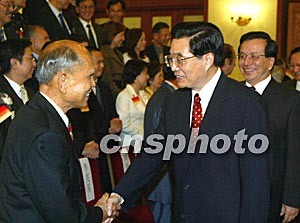 中新社北京九月二十七日電(記者邢利宇)中國(guó)國(guó)家主席胡錦濤今天下午在人民大會(huì)堂會(huì)見(jiàn)了以霍英東為團(tuán)長(zhǎng)的香港工商界知名人士訪京團(tuán)。