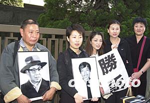 十三名侵華日軍遺棄化武受害者向東京地方法院提起的索賠訴訟,九月二十九日下午一審判決,中國原告獲得勝訴。判決下達(dá)后,作為原告的受害者家屬在法院門前手捧親人遺像百感交集。作者:王健