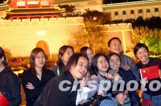 十月一日十國慶長假第一天,當(dāng)晚有數(shù)萬游客在北京天安門廣場觀看夜景。中新社記者:盛佳鵬