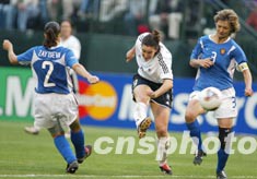 美國(guó)當(dāng)?shù)貢r(shí)間10月2日,2003女足世界杯德國(guó)隊(duì)與俄羅斯隊(duì)爭(zhēng)奪四強(qiáng)席位。德國(guó)隊(duì)發(fā)揮了體能好速度快的優(yōu)勢(shì),以7比1大勝俄羅斯隊(duì),殺入四強(qiáng)。作者:劉占坤