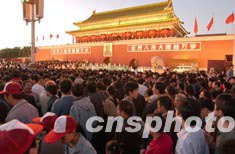 十一國慶長假期間,北京各主要旅游景點有人如織,天安門更是迎來了一年中最大客流量。夜幕降臨的時候,天安門城樓前人如潮涌,十分壯觀。中新社記者:張煒