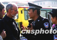 參加國慶值勤的北京警察學(xué)院學(xué)員,四日在天安門廣場為外國游人解答問題。“十一”期間首都警方加大了旅游景區(qū)的值勤力量,以確保游客安全。中新社記者:宋吉河