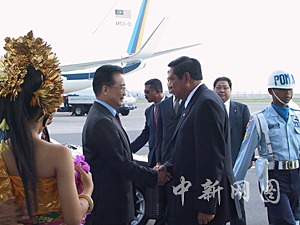 中新網(wǎng)10月6日電(記者齊彬)中國國務(wù)院總理溫家寶于當(dāng)?shù)貢r間6日下午2時35分抵達印尼巴厘島出席第七次東盟與中日韓(10+3)領(lǐng)導(dǎo)人會議、東盟與中國(10+1)領(lǐng)導(dǎo)人會議及第五次中日韓領(lǐng)導(dǎo)人會晤。