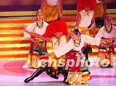 在香港慶祝中華人民共和國54周年國慶文藝晚會上,一臺融合中西音樂、舞蹈、歌唱、軍操及武術(shù)表演的綜藝節(jié)目,令觀眾目不暇給。圖為精彩紛呈的舞蹈《春回大地樂全城》。作者:洪少葵