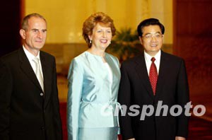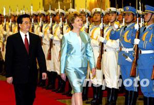 會談前,胡錦濤主席為麥卡利斯總統(tǒng)訪華舉行了歡迎儀式。