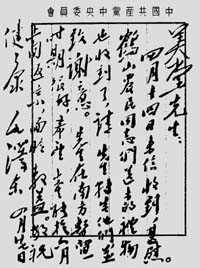 1951年廣東僑鄉(xiāng)鶴山開展土地改革,經(jīng)毛主席、周總理批準(zhǔn),司徒美堂南下視察土改,以其所見所聞在《光明日報(bào)》發(fā)表了《粵中僑鄉(xiāng)的土改》專欄文章。途中,司徒美堂上書毛主席,報(bào)告土改情況,并轉(zhuǎn)去農(nóng)民獻(xiàn)給毛主席的禮物(由致公黨的黃鼎臣同志帶至北京)。很快,他就得到毛主席的復(fù)信,請他向鶴山農(nóng)民轉(zhuǎn)達(dá)主席的謝意,并希望他于6月上旬返京(原信見圖片)。復(fù)信由粵中報(bào)制版刊出,僑鄉(xiāng)農(nóng)民也十分高興。
