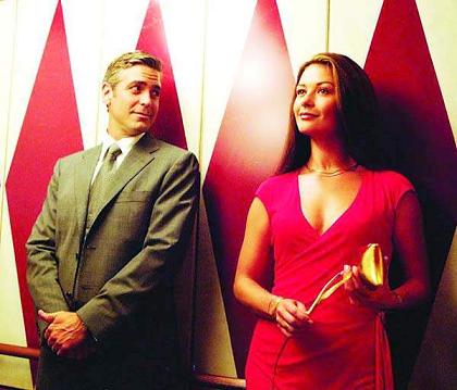 澤塔·瓊斯:我不想說(shuō)出具體的日期,但我是在影片拍攝的尾期時(shí)懷孕的。(這時(shí)克魯尼用一種很奇怪的眼神看著澤塔·瓊斯,好像這是因?yàn)樗旁斐傻摹?哦,天啊,我現(xiàn)在麻煩大了!不過(guò),擁有兩個(gè)孩子的感覺(jué)真的很棒。